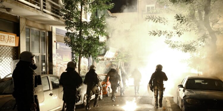 Επεισόδια σημειώθηκαν μετά τα μεσάνυχτα στα Εξάρχεια, όταν μια ομάδα περίπου 50 κουκουλοφόρων επιτέθηκε στη διμοιρία των ΜΑΤ στη Χαριλάου Τρικούπη με πέτρες, μπουκάλια, μάρμαρα και άλλα αντικείμενα.