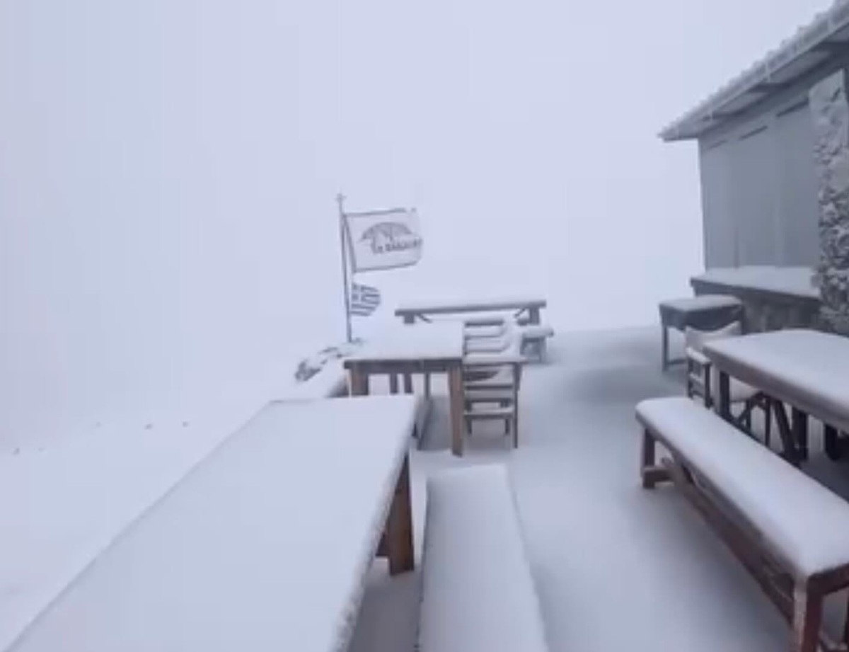 Από το πρωί η μαγική εικόνα με το χιονισμένο καταφύγιο στο βουνό των Θεών κάνει τον γύρο του Διαδικτύου.