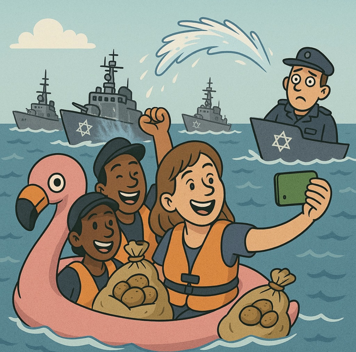 Η επικαιρότητα μας χάρισε άλλη μια σκηνή που μόνο η Μεσόγειος ξέρει να σερβίρει: πλοιάρια της Global Sumud Flotilla, φορτωμένα με ανθρωπιστική βοήθεια για τη Γάζα, αναχαιτίστηκαν από το Ισραήλ σε διεθνή ύδατα. ΦΥΣΙΚΑ, δε θα έλειπαν δραματικά βιντεάκια από Έλληνες ινφλουένσερ-ακτιβιστές: «Αν βλέπετε αυτό το βίντεο, με έχουν απαγάγει. Ζητήστε μας πίσω». Μόνο που η συνέχεια θύμιζε περισσότερο Survivor παρά θρίλερ: μπουγέλο, στέγνωμα, σάντουιτς και νερά. Δηλαδή, αν το καλοσκεφτείς, το πιο σκληρό ήταν το catering.