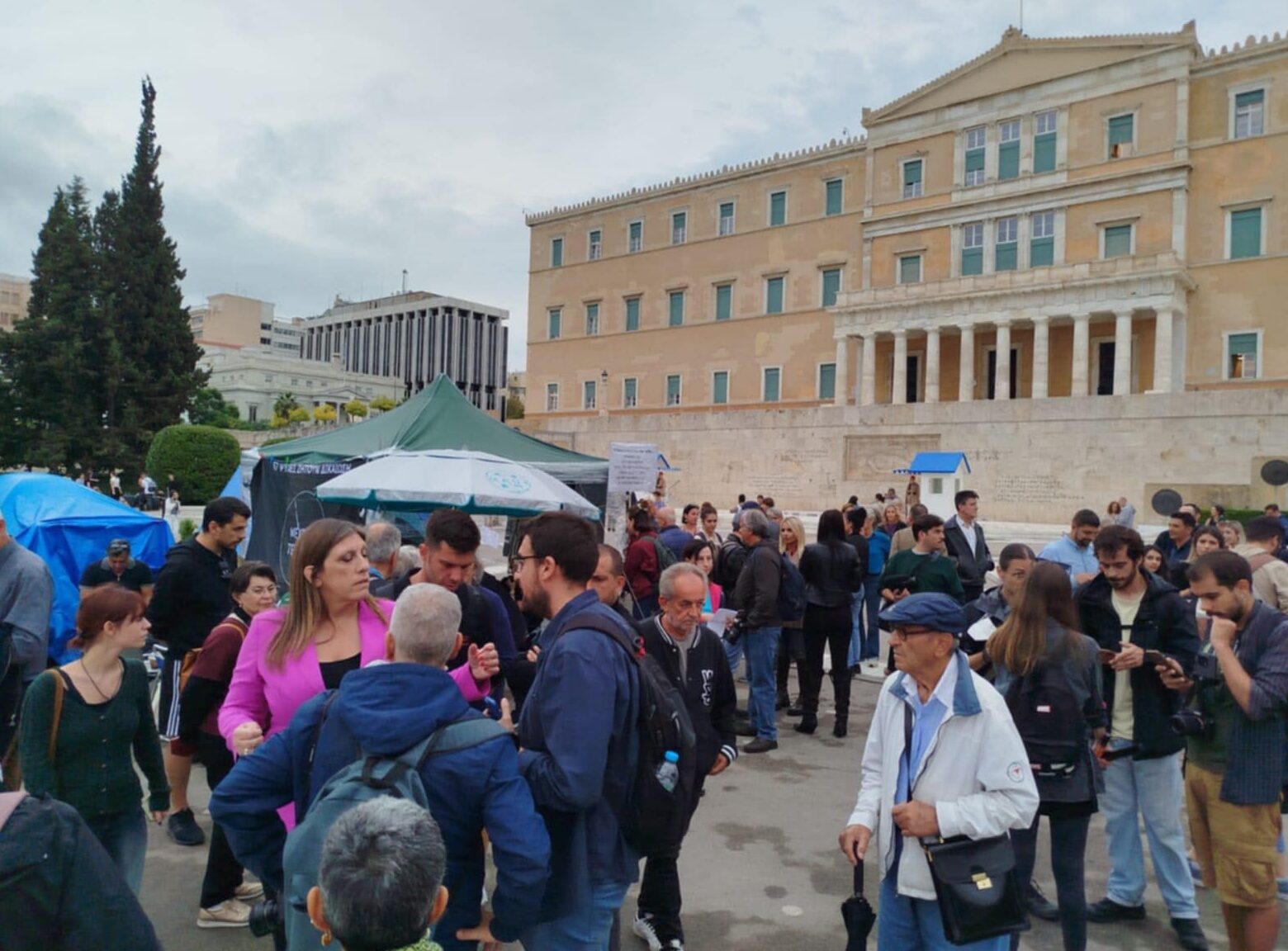 Παραμένει στο Σύνταγμα ο Πάνος Ρούτσι καθώς δεν έχει λάβει επισήμως τα νεότερα στοιχεία από την εισαγγελία Λάρισας εκτός από τις παραγγελίες που αφορούν στην εκταφή της σορού του γιου του Ντένη.