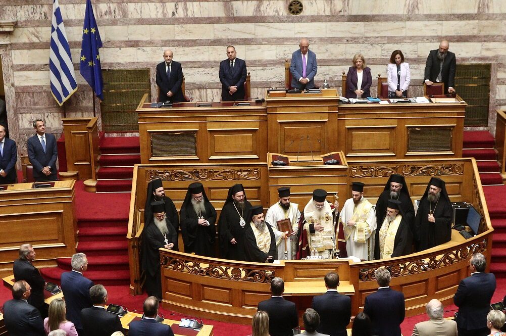 Με τον καθιερωμένο αγιασμό, από τον Αρχιεπίσκοπο Αθηνών και πάσης Ελλάδος Ιερώνυμο και τα μέλη της Διαρκούς Ιεράς Συνόδου, η Βουλή ξεκίνησε τη νέα κοινοβουλευτική περίοδό της.