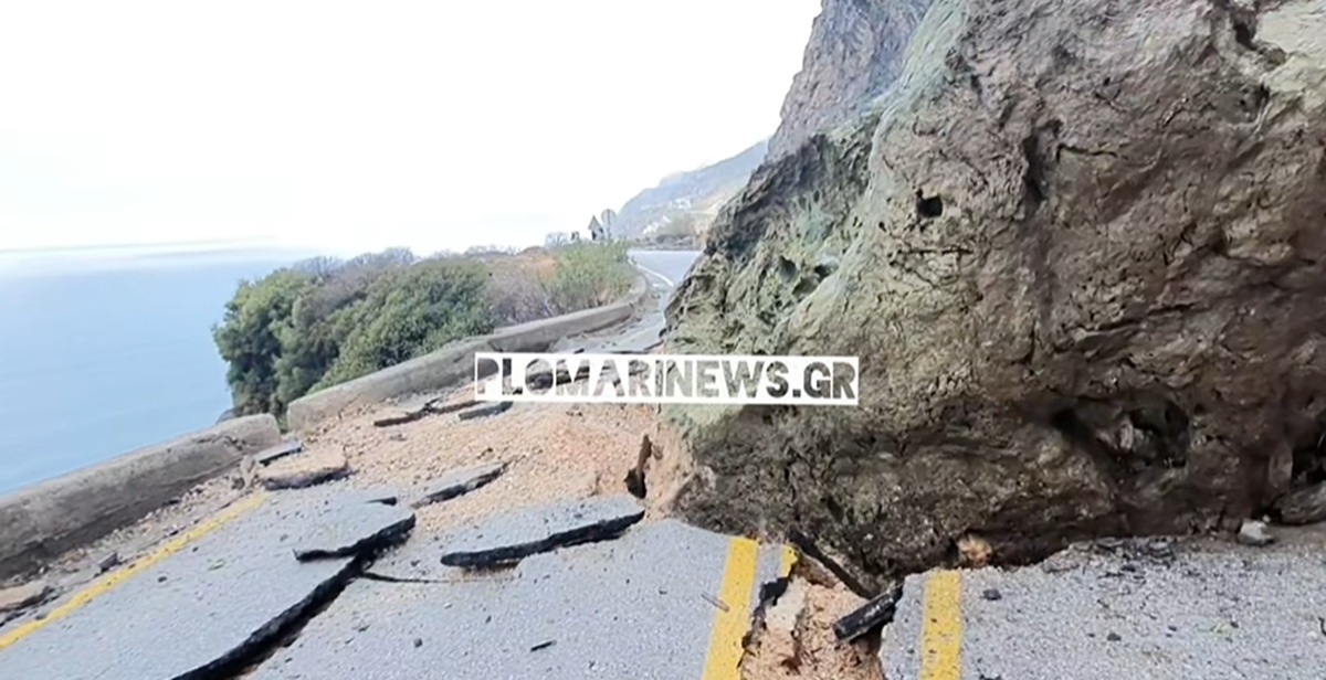 Έπεσε σαν κομήτης: Τεράστιος βράχος ισοπέδωσε δρόμο στη Λέσβο (βίντεο σοκ)