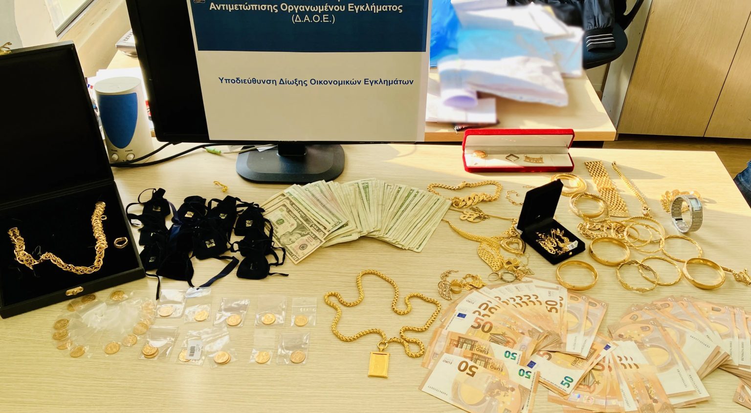 Σε έρευνες που πραγματοποιήθηκαν, παρουσία δικαστικών λειτουργών, σε διάφορες περιοχές της Αττικής και συγκεκριμένα σε οικίες, επιχειρήσεις και θυρίδα, συνολικά βρέθηκαν και κατασχέθηκαν πλήθος εγγράφων και σφραγίδων εταιρειών, το χρηματικό ποσό των 15.655 ευρώ, τραπεζικές επιταγές συνολικού ποσού 19.800 ευρώ, 37 χρυσές λίρες, πλαστό διαβατήριο, πλήθος καρτών ανάληψης, δώδεκα συσκευές κινητών τηλεφώνων και πέντε Ι.Χ.Ε. αυτοκίνητα.